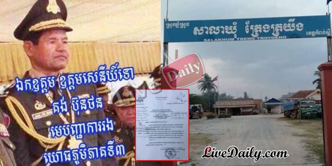 ប្រជាពលរដ្ឋទាំង១២គ្រួសារ ដែលរស់នៅភូមិ២ ឃុំត្រែងត្រយឹងស្រុកភ្នំស្រួច ខេត្តកំពង់ស្ពឺ សូមសំណូមពរដល់នាយឧត្តមសេនីយ៍ វង្ស ពិសេន អគ្គមេបញ្ជាការកងយោធពលខេមរភូមិន្ទ យកអភិក្រមទាំង៥របស់សម្ដេចតេជោ ហ៊ុន សែន នាយករដ្ឋមន្ដ្រីនៃកម្ពុជា មកអនុវត្ដចំពោះលោកផ្កាយ២ គង់ ប៊ុនថន ព្រោះប្រជាពលរដ្ឋរងទុក្ខ១៥ឆ្នាំមកហើយ៕